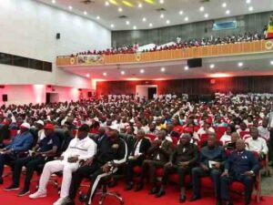 Au Palais des Congrès, la salle était comble. Prestations culturelles, animation d’un griot et d’un artiste comédien, ferveur palpable : la présentation officielle de la brochure « 242 raisons de soutenir Dénis Sassou Nguesso » a réuni, ce 1er mars 2026 à Brazzaville, citoyens, leaders associatifs et acteurs politiques autour d’un message d’unité et de responsabilité citoyenne. Une initiative de la dynamique Pona Ekolo Samu Na Bwala conduite par Hugues NGOUELONDELÉ.
