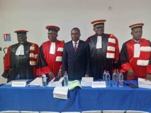 Le Pr Modou NDIAYE a salué la clarté et la rigueur méthodologique. Le Pr Sidoine MOUKOUKOU a reconnu une thèse globalement solide malgré quelques faiblesses de forme. Le président du jury, le Pr Arsène ELONGO, a mis en avant la richesse des valeurs de l’imparfait, capable d’exprimer l’habitude, la durée et la complexité narrative. L’examinateur Fernand GELLELY OTSIEMA a, quant à lui, souligné la rupture stylistique dans les romans de Mabanckou, où la syntaxe classique est parfois déconstruite pour créer une écriture continue et innovante.